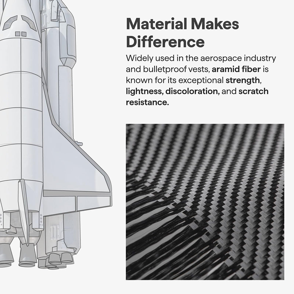 • The subtly raised frame combined with aramid fiber known for its superior strength are valuable assets against damage.