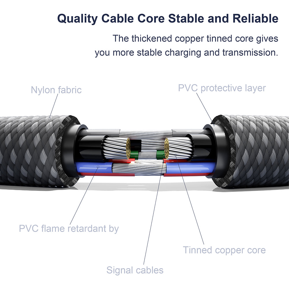 • The robust construction with braided nylon exterior and metal core offers exceptional durability and an elegant finish.